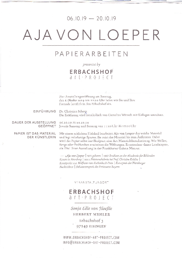 Annette Sauermann ''Moved by light, Katharina Mayer ''Family Matters'', Stephen Cone Weeks ''der Vogel die Pforte das Feuer'', Herbert Mehler ''AJA VON LOEPER''