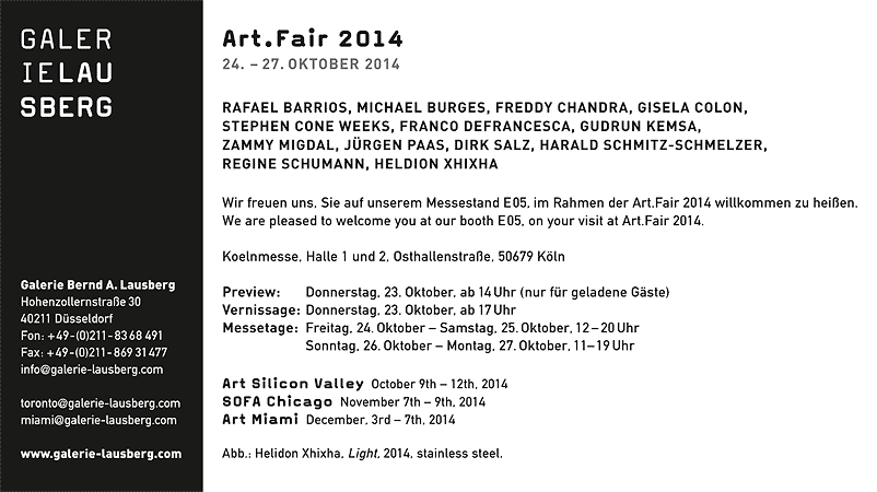 Wir freuen uns, Sie auf unserem Messestand E05, im Rahmen der Art.Fair 2014 willkommen zu heißen.